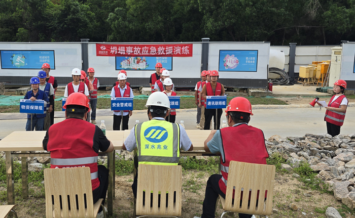 7月15日,二公司深圳市径心水库除险加固工程项目开展基坑坍塌事故应急救援演练,监理单位相关领导到场观摩指导。